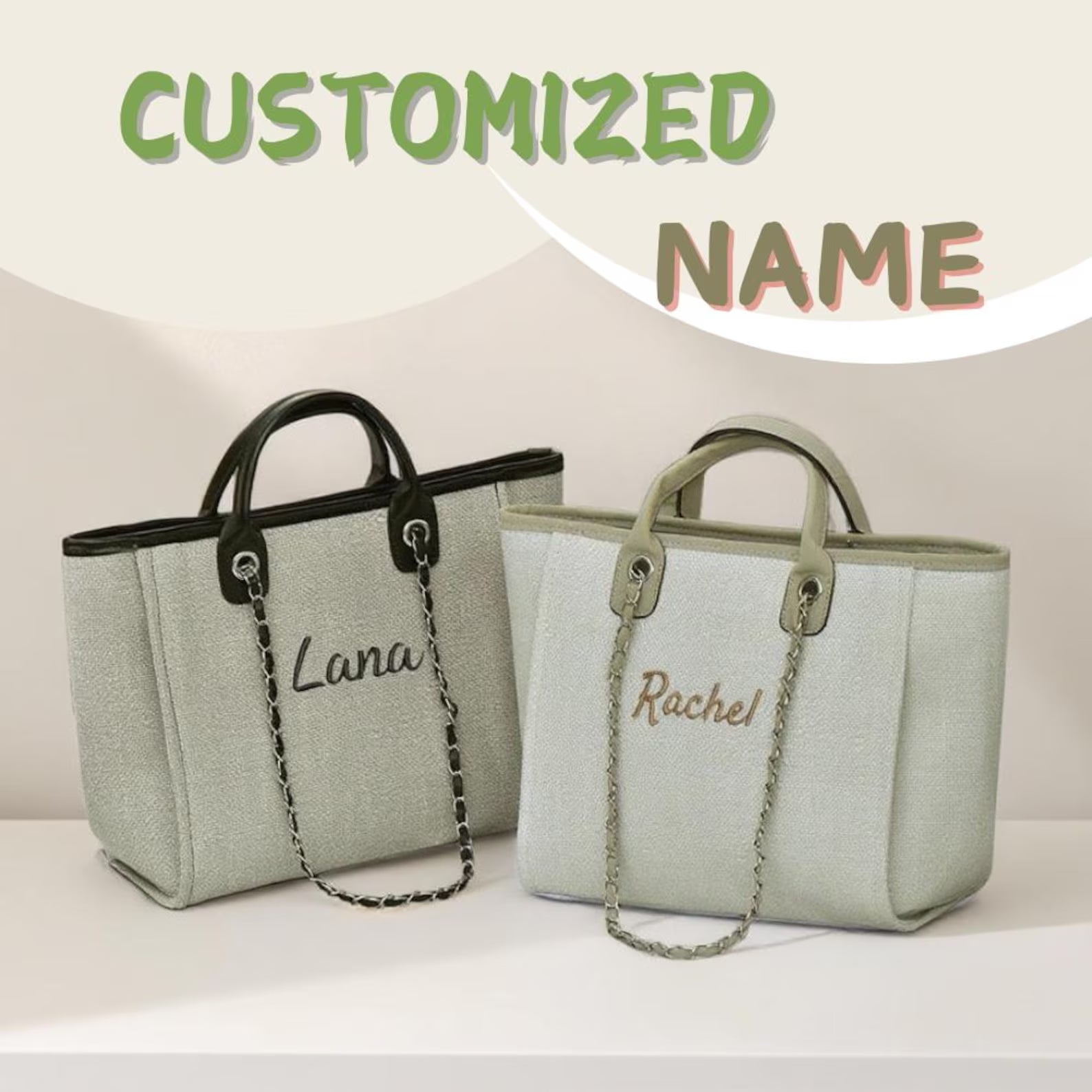 🖋️ Añade tus iniciales (1 a 3 letras) en el frente del bolso, impresas en tipografía elegante.